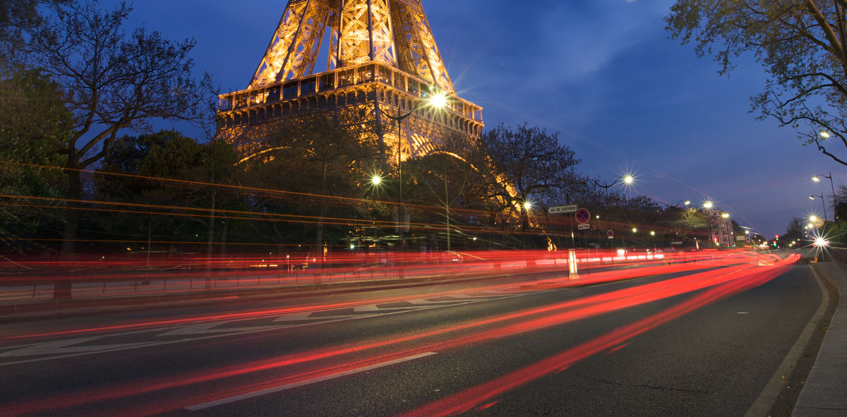 In this photography class, Karl spent some time doing long exposures and photographing light trails in front of the Eiffel Tower.