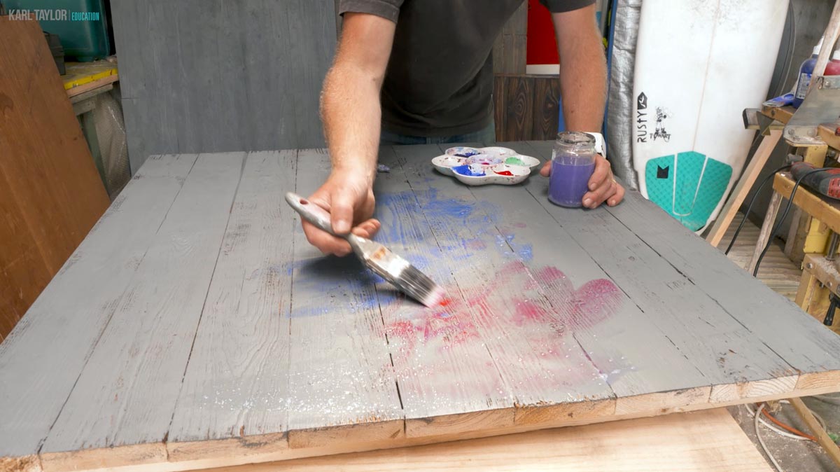 My question is… can I get a similar result if I add some of the waxy crayon colours and watered down acrylic paints before they use the blow torch on the board ?