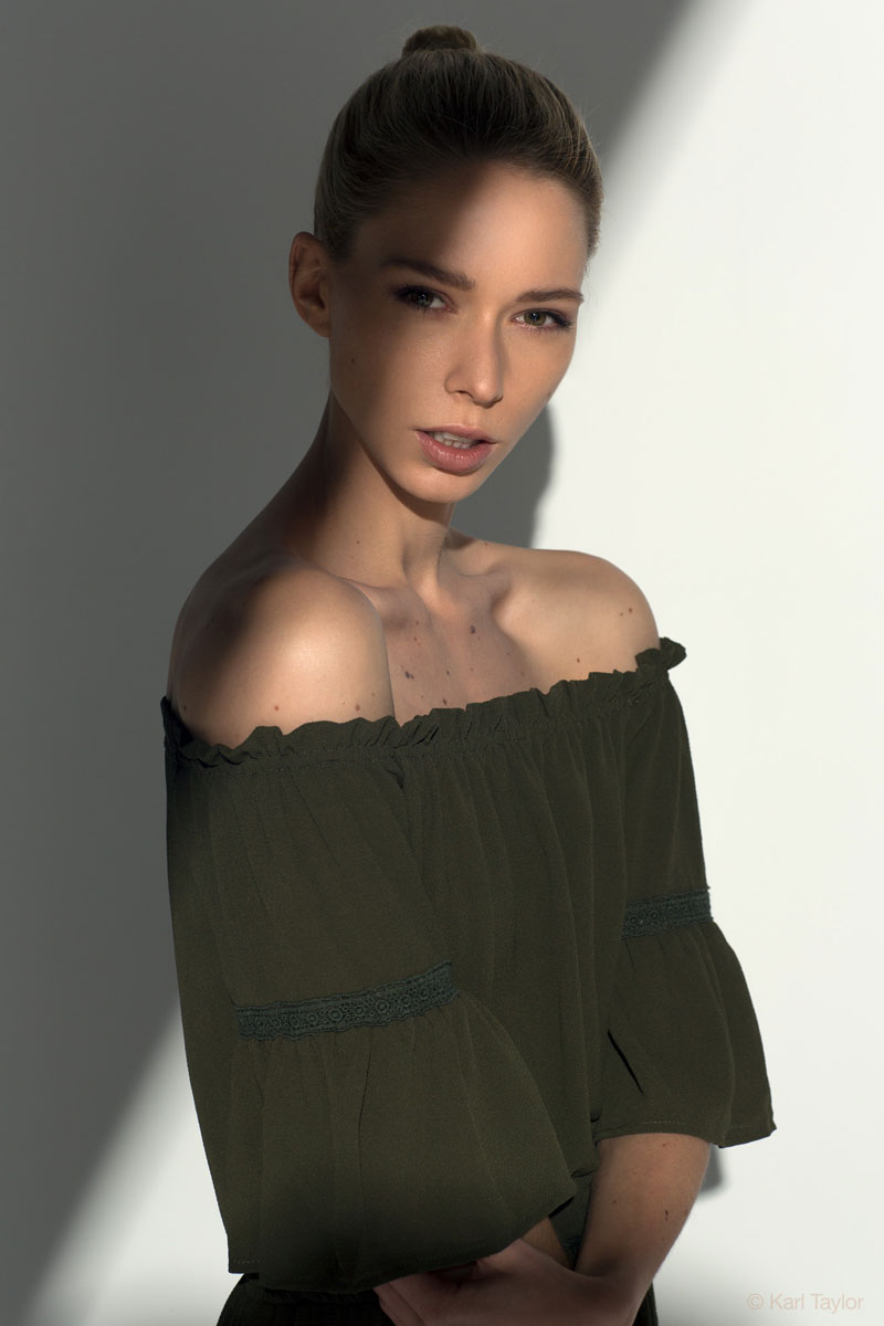 After demonstrating how to simulate sunlight using a single point light source, Karl builds on that and demonstrates how to creatively combine shadow and light to produce a stunning result. He shows you how to easily combine shadow and light in this single-light setup and shares some key tips for producing controlled shadows even in the smallest of studio spaces.