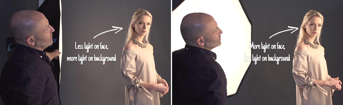 What differences would you expect doing this set up with e.g. 2 x 80cm octabox softboxes closer to the backdrop rather than 150cm octabox and 120cm x180 softbox?