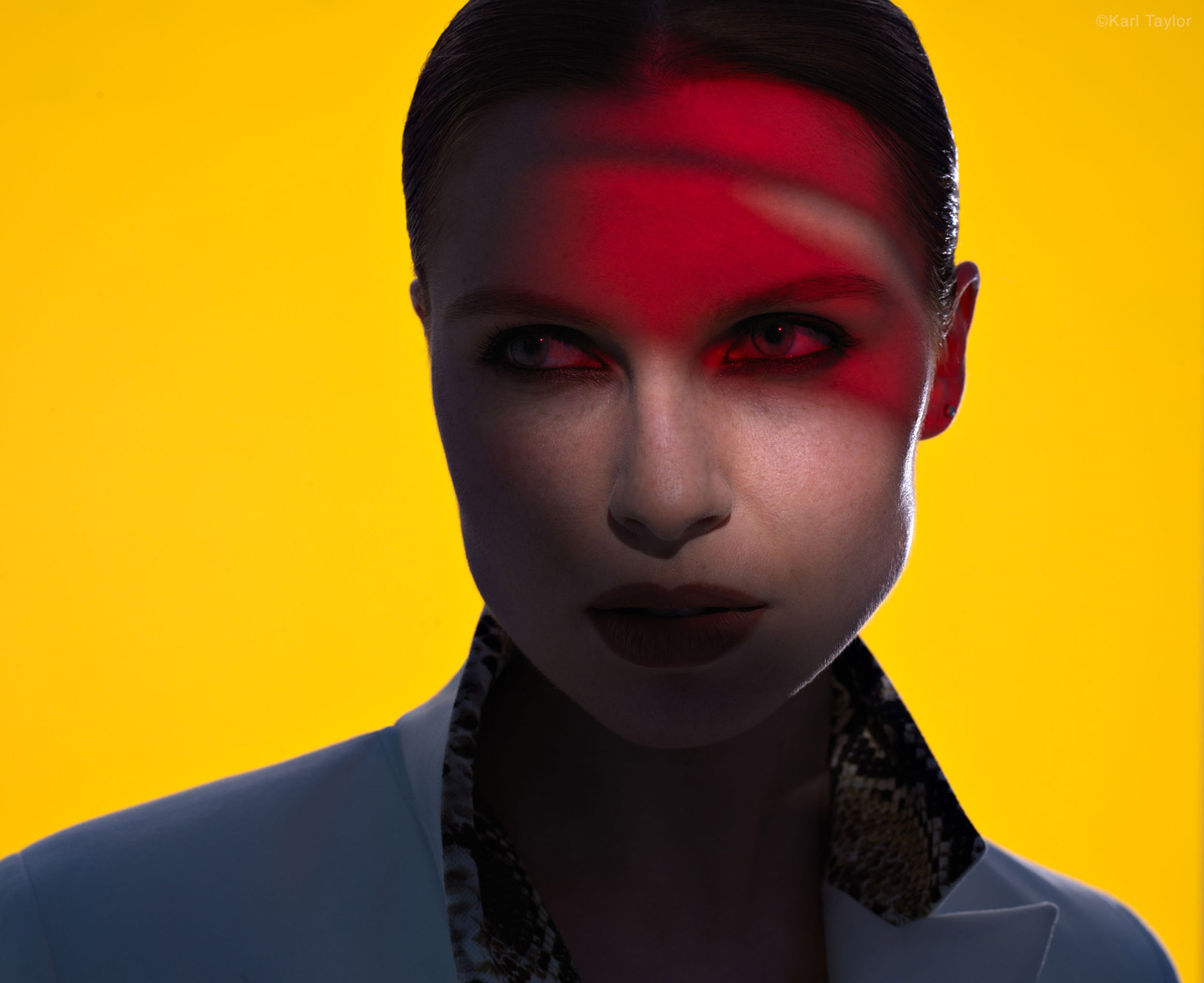 In this live workshop, Karl Taylor demonstrates how to create this impactful portrait using just three studio lights, including a Godox projection attachment and further DIY modifiers.