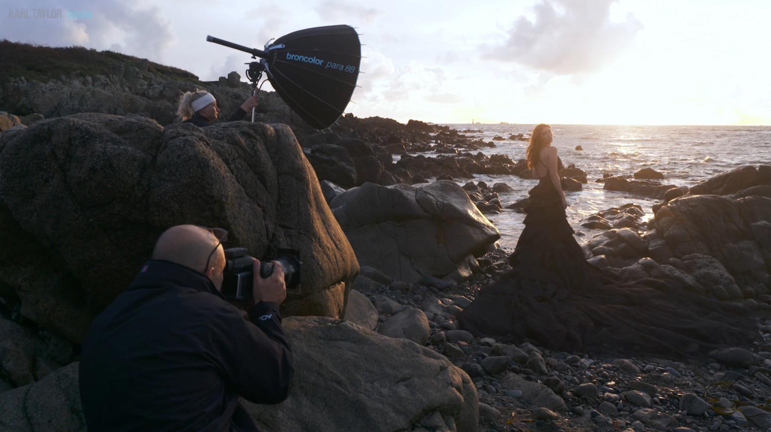 Watch Karl and the team brave high winds and challenging tides to capture a truly stunning shot. You’ll learn how to combine natural light with studio flash, how to control ambient light from the setting sun, how to balance multiple lights and how to use specific modifiers to create controlled patches of light in key parts of the shot.