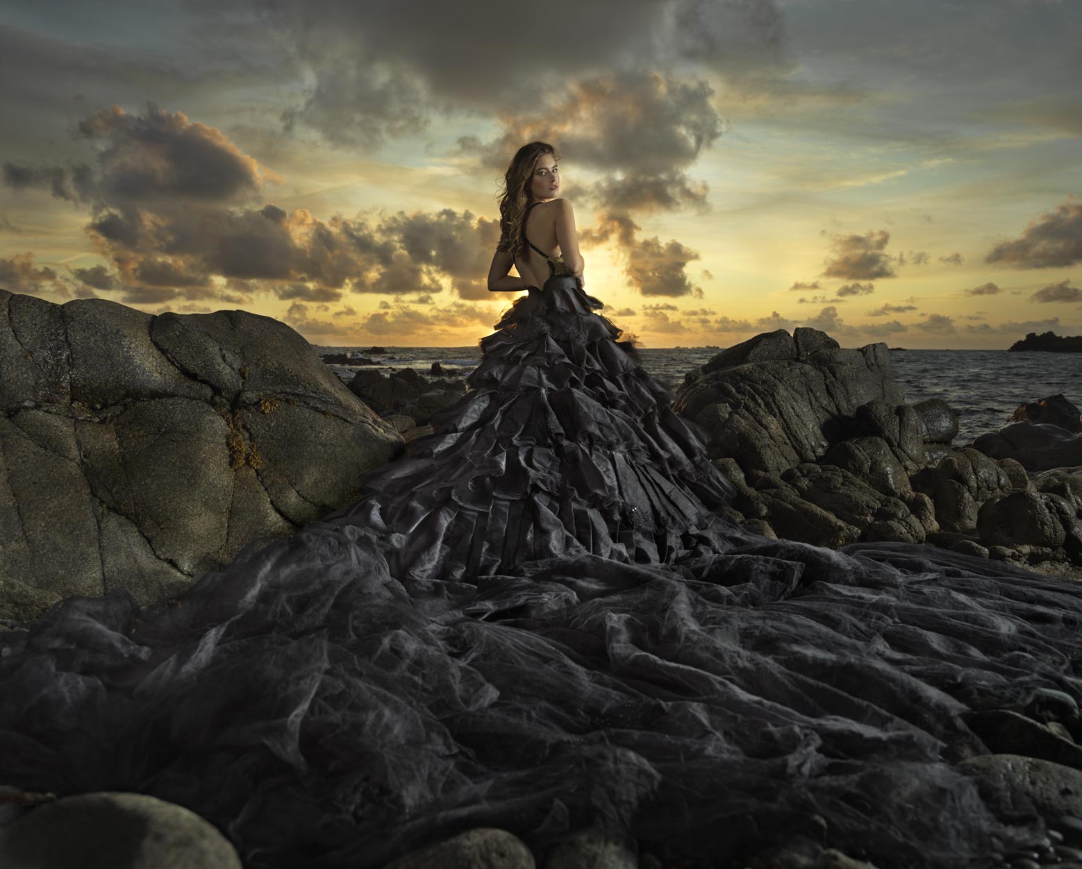 So creative to imagine and then realize such a beautiful almost surreal composition. Stunning result Karl! The dress choice is amazing – it’s hard to tell where the dress stops and rocks begin. The lighting is perfect – it looks so natural. Charis and all the details are illuminated with precision. That sky was just perfect. You could wait a long time for a sky like that – your planning, preparation, and timing were rewarded by the perfect sky. The video and the narrative showcased your work so well.