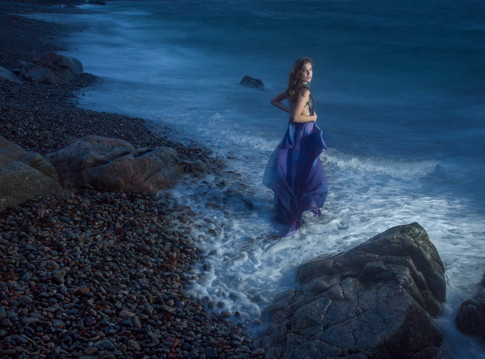1. Hi Marianna, I used the fastest flash duration I could based on the power I needed, so my Move packs were set to ‘speed’ mode. I had no choice to use the high powers to overcome the ND filters I was using to block out the natural light to achieve the long shutter speeds I needed to capture motion in other areas of the picture. The duration I would have been getting from the flash at these powers and settings would have been about 1/2000th of a second which was ample to freeze the model and the water near her, of course she needed to also remain still for the remaining seconds because the daylight will also expose her and cause blur which is why the dress flapping in the wind has motion blur but I’m very happy with that effect. Even if I had used the fastest flash duration, I still needed the daylight for the scenery and that would have still affected the dress on the long exposure. If you had wanted the model sharp too then you would need to increase the shutter speed to but then you would lose light – which you could compensate by increase aperture size or ISO – but then you would lose the mood of the motion of the waves in the background.