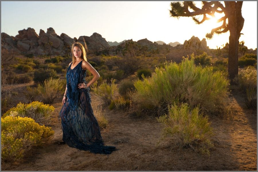 Combining natural light and strobes, Karl uses the setting sun behind his model to create beautiful rim lighting, which he combines with speedlights to make his subject stand out against the backdrop of the desert.
