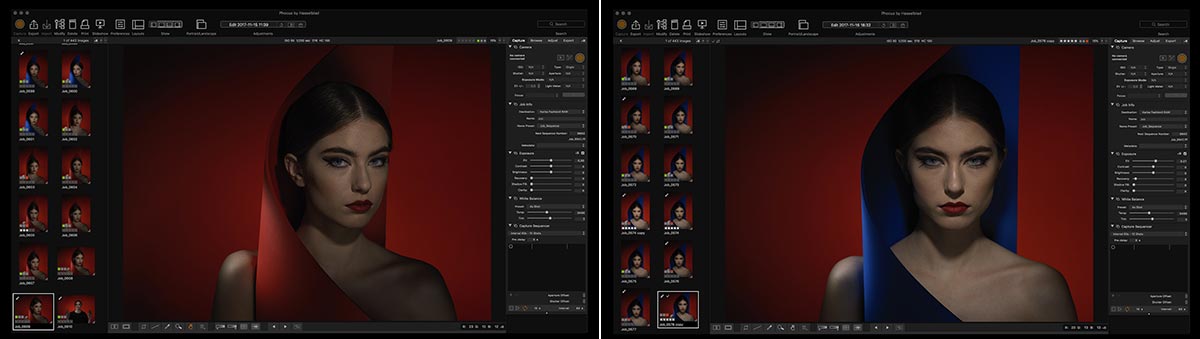 Once I reached a point with my lighting where I was happy, I switched out the blue accessory for the red one, to see if I preferred it. Although it too gave a striking result, I preferred with vibrant contrast of the red and blue.