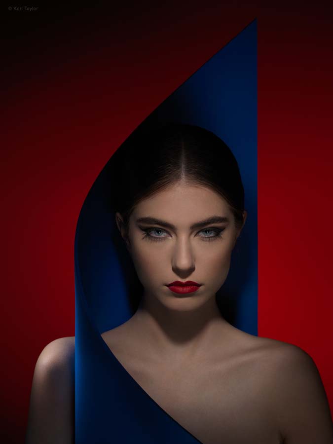Bold, juxtaposing colors and strong form were key elements in this futuristic sci-fi style image that Karl created as part of a series of fashion images with model Kariss Craig, professional fashion stylist Bianca Swan and makeup artist and hair stylist Shanine Levrier.