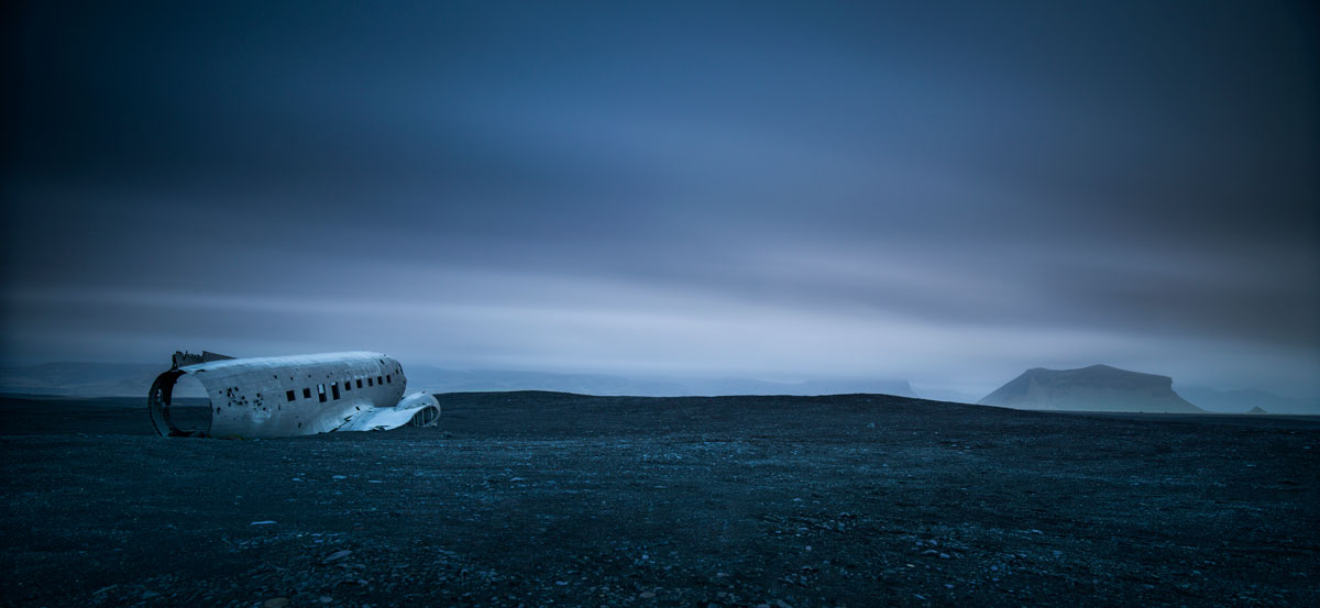 At a DC-3 Plane crash site, Karl takes some landscape shots in preparation for a fashion shoot later in the trip when the weather improves. He demonstrates how he uses a Big Stopper to capture a long exposure of several minutes in the day time and make the already surreal scene seem even more spectacular.