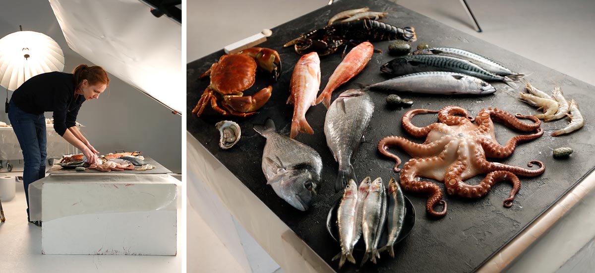 While Karl was working on the lighting, Anna continued to work on the styling of the image. She reworked the composition of the shot a few times to get the right feel to the image, but also explained that time was of the essence when working with fresh ingredients like fish.